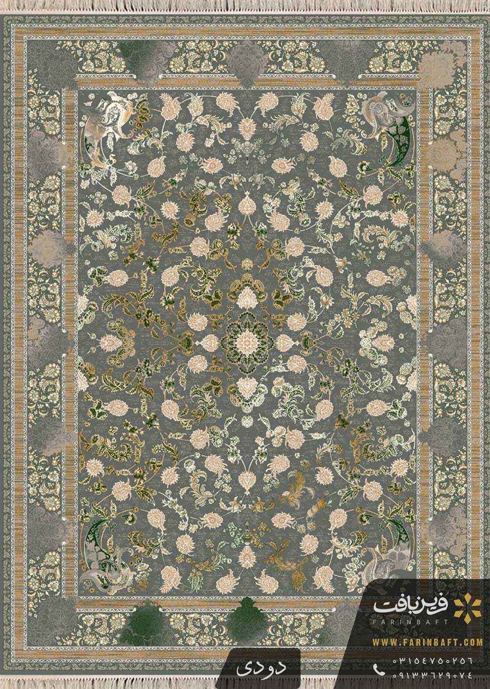 رنگ زمینه دودی فرش وینتیج طرح هامین باعث شده این فرش کمی تیره باشد به همین دلیل این محصول را به کسانی که خانه ای دلباز دارند و به دنبال فرش تیره هستند پیشنهاد می کنیم. نمود گل های طلایی و سبز در بوم این فرش بسیار زیبا است. فرش وینتیج فرین بافت در رنگ های به روز و خاکستری تولید می شود و شما می توانید آن را در دکوراسیون های امروزی دیزاین کنید.